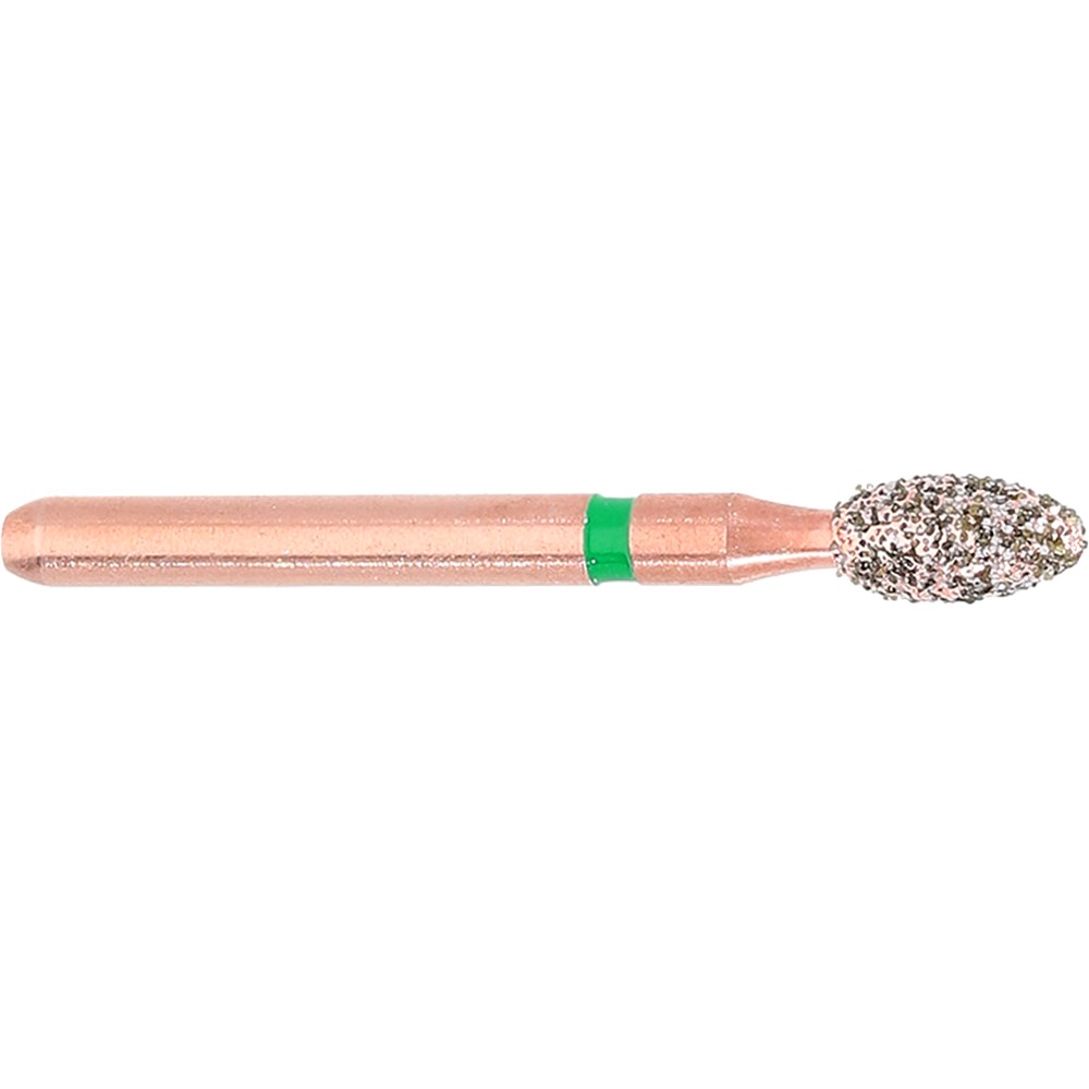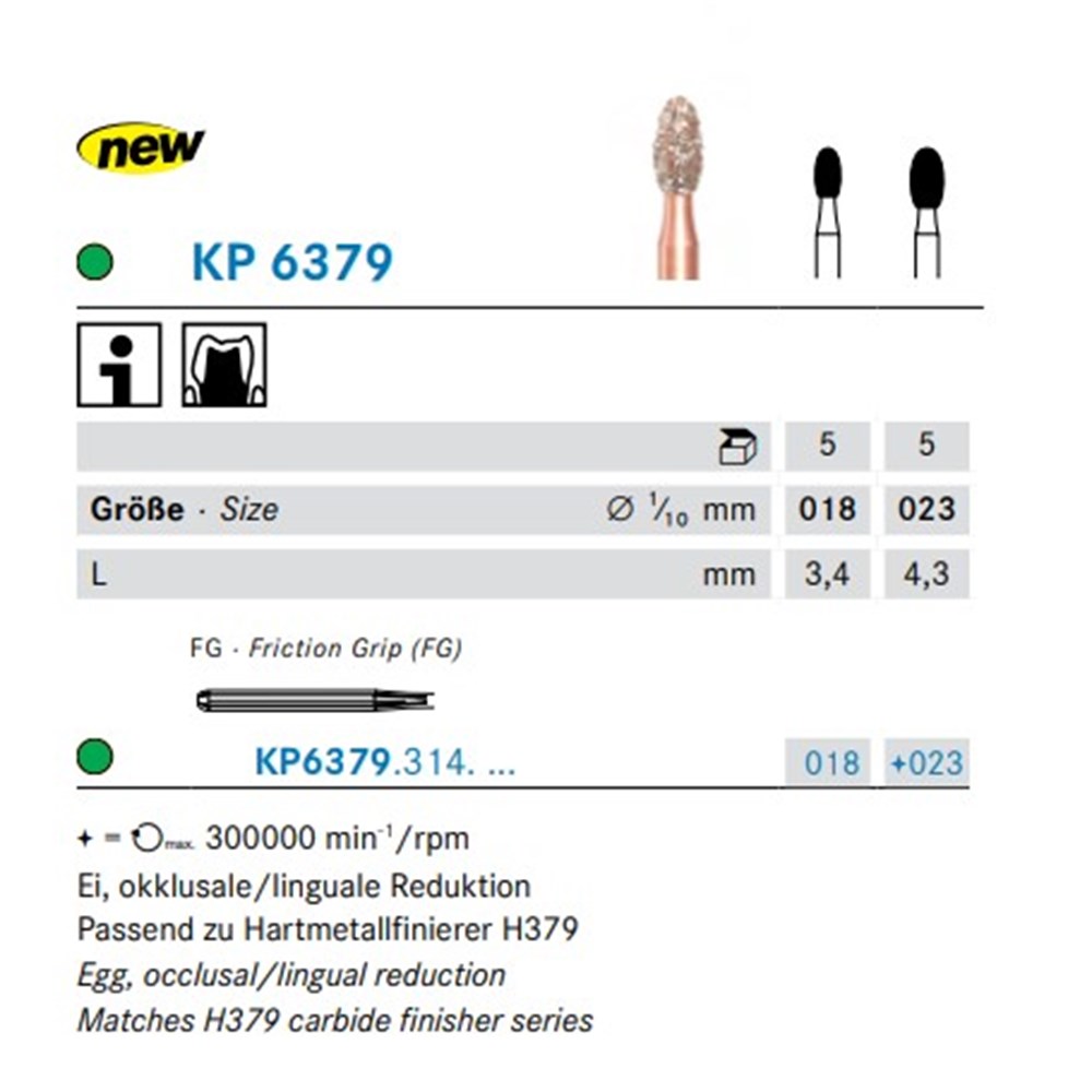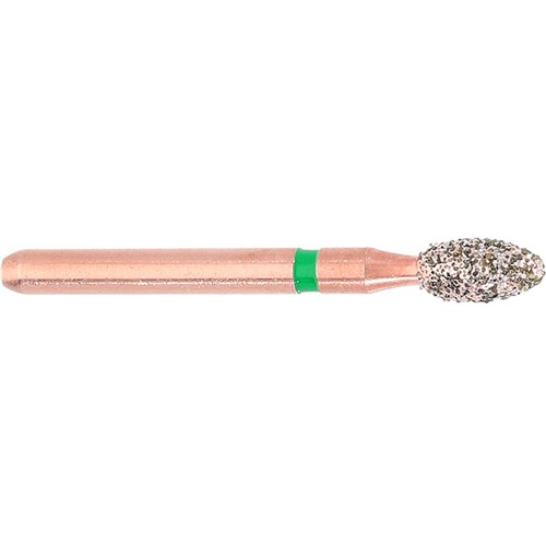 DIAO - KP6379 is an egg shaped coarse, occlusal/lingual reduction friction grip diamond. Head diameter 023 (2.3mm) with 4.3mm working length.
