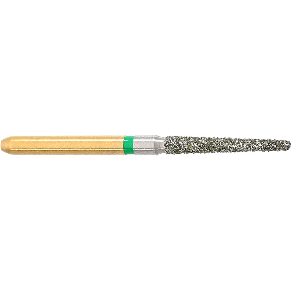 S6848KR coarse long tapered shoulder, rounded edge S-Diamond for crown preparation. FG 314, size 016 (1.6mm diameter) with 10mm working length and 2 degree angle.