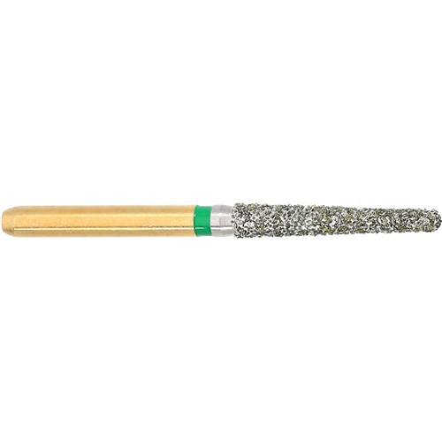 S6850 coarse long tapered chamfer S-Diamond for crown preparation. FG 314, size 018 (1.8mm diameter) with 10mm working length and 2 degree angle.