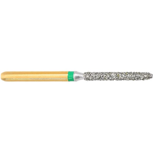 S-Diamond S6879 is a long parallel chamfer torpedo, coarse diamond used for crown preparation. FG 314 Size 012 (1.2mm), with length 10.0mm. Matches H284 carbide finisher series.