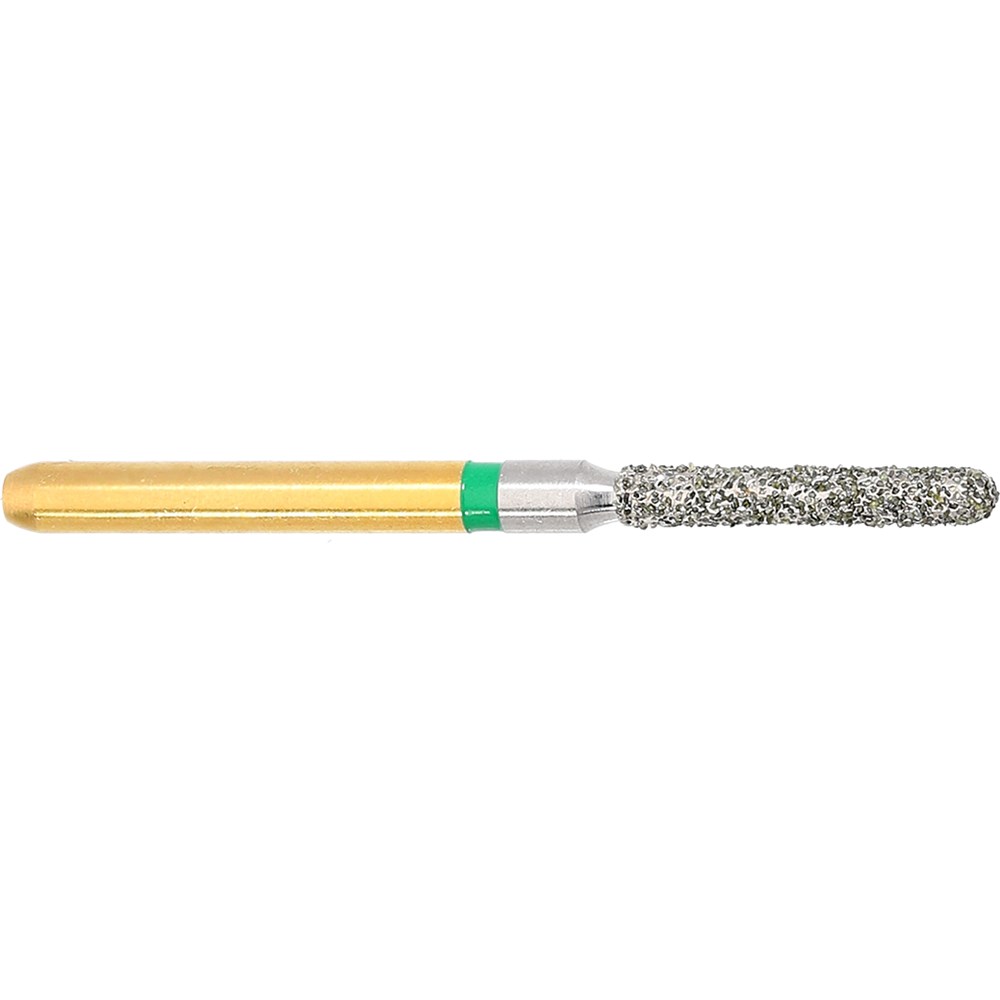S-Diamond S6881 is a parallel chamfer rounded edge shaped coarse, friction grip diamond used for crown preparation. Head diameter 014 (1.4mm) and 8.0mm working length.