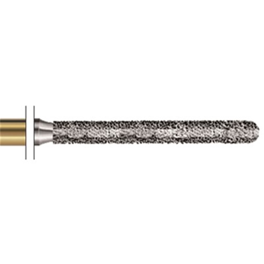 S-Diamond S6882L is an extra long parallel chamfer rounded edge shaped coarse, friction grip diamond used for crown preparation. Size 014, with length 12.0mm.