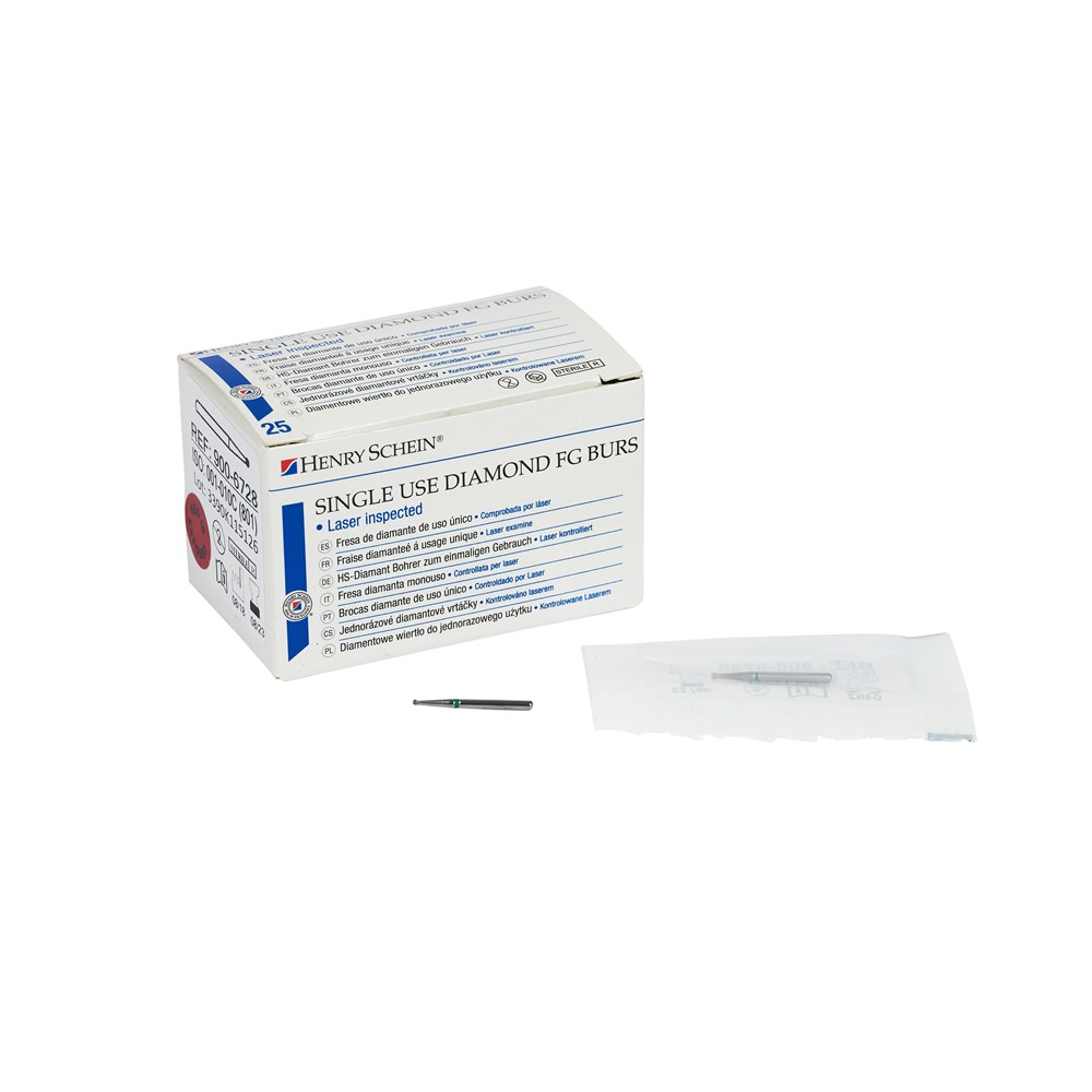 • Henry Schein Diamond Bur - 001-010C - Round - Sterile - Single Patient - High Speed, Friction Grip (FG), 25-Pack