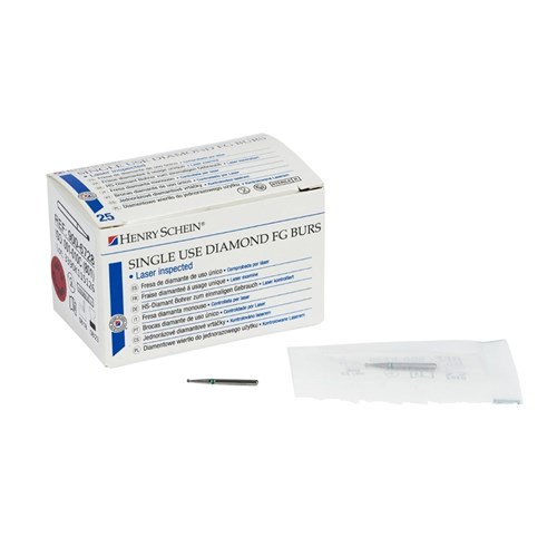 • Henry Schein Diamond Bur - 001-023C - Round - Sterile - Single Patient - High Speed, Friction Grip (FG), 25-Pack