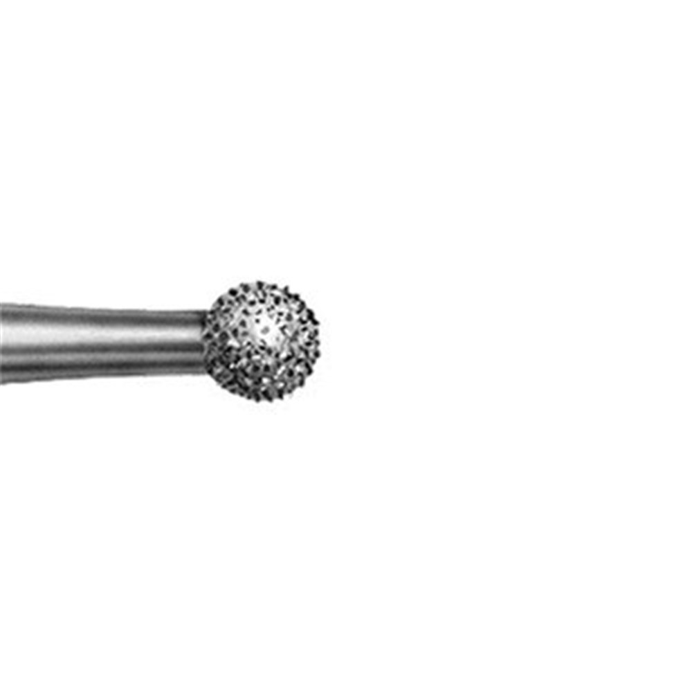 Medium grit round diamond with 104 handpiece shank. Head diameter 023 (2.3mm). Maximum recommended speed 100,000 rpm.