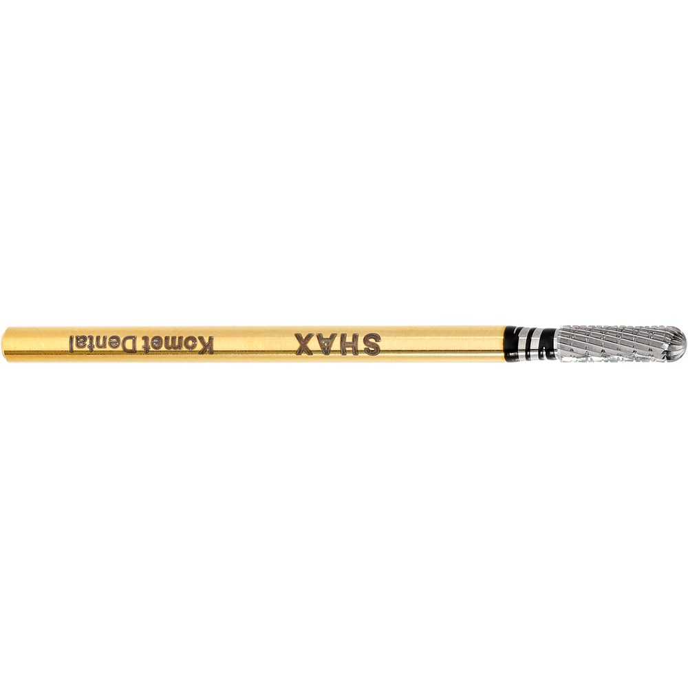 SHAX laboratory tungsten carbide cutter H129SHAX, HP 104 shankfor straight lab handpiece, size 023 (2.3mm) diameter with 8mm working length. For non-precious metal and model cast alloys. Shax are a new generation of tungsten carbide cutters, for work on non-precious metals. The active part is provided with a unique blade geometry where each tooth has its own individual height and depth. These cutters remove large amounts of material while creating a perfectly smooth finish on metal surfaces.