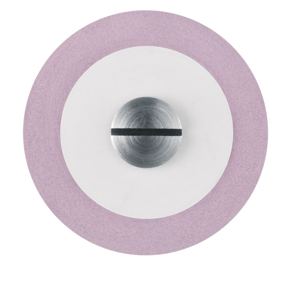Polishers for ceramics interspersed with diamond medium grit for high shine polishing. Mounted HP 104, 17mm diameter wheel with 2.5mm working length.