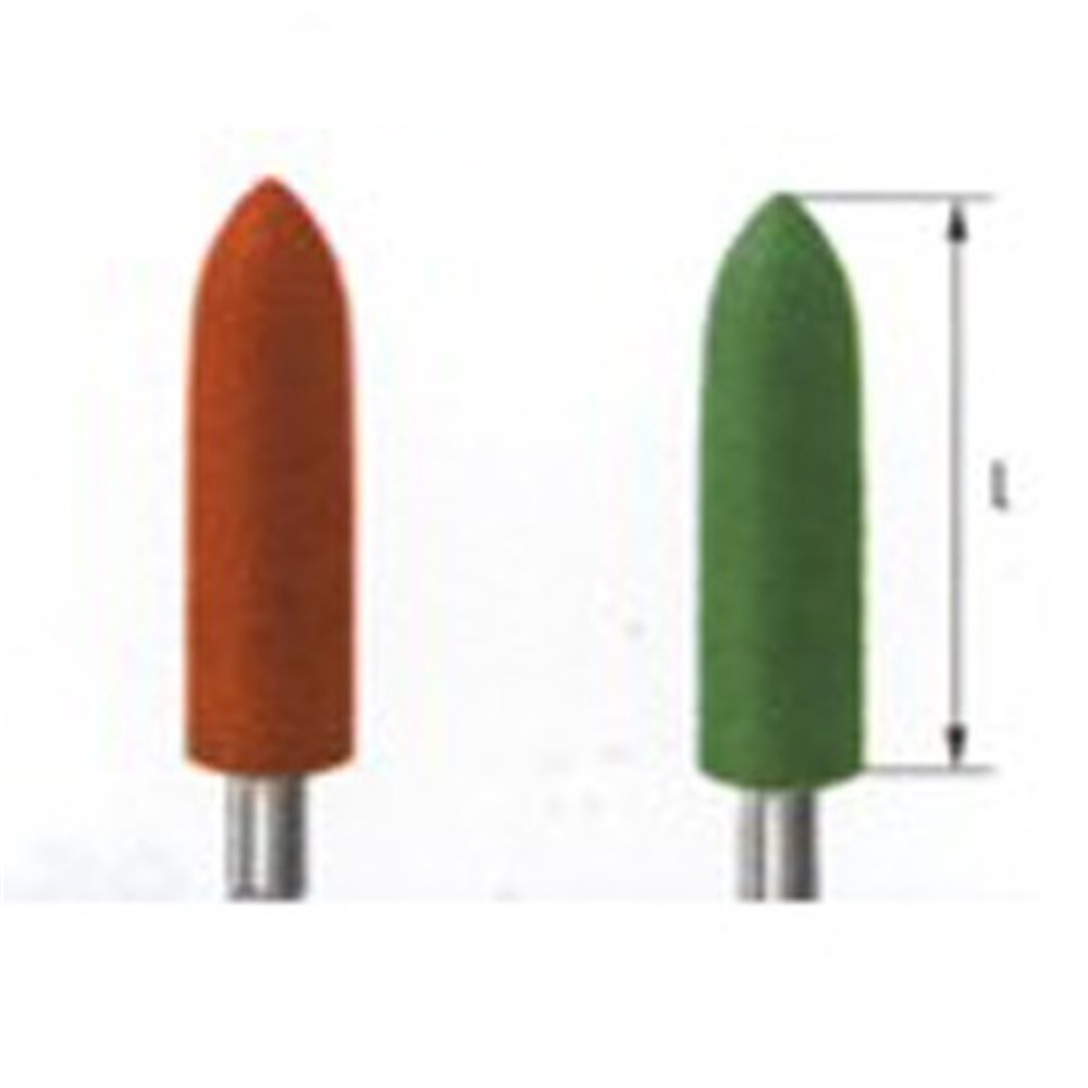 High-efficiency polisher for precious metal and non-precious metal alloys, model cast, extra-oral use. Large Flame with HP 104 lab shank, size 045 and 16mm working length.