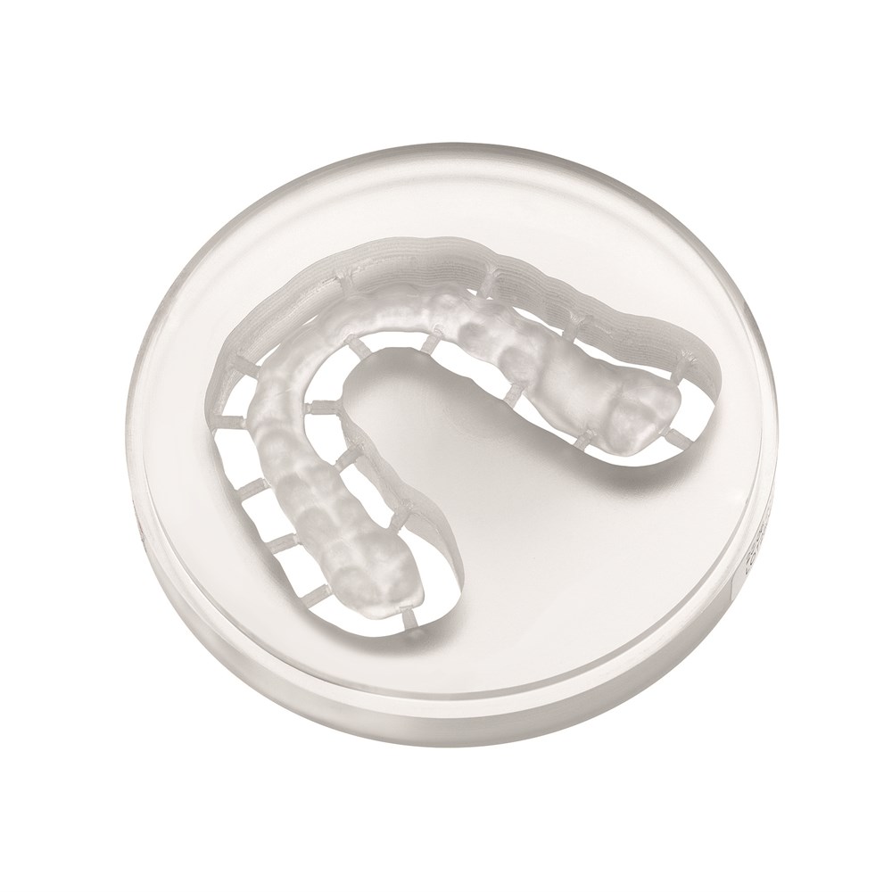MMA-free material for the fabrication of functional occlusal splints with thermoplastic memory effect.