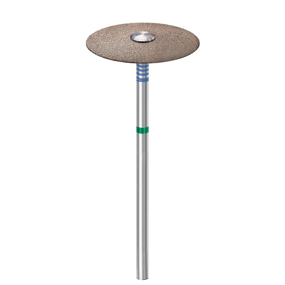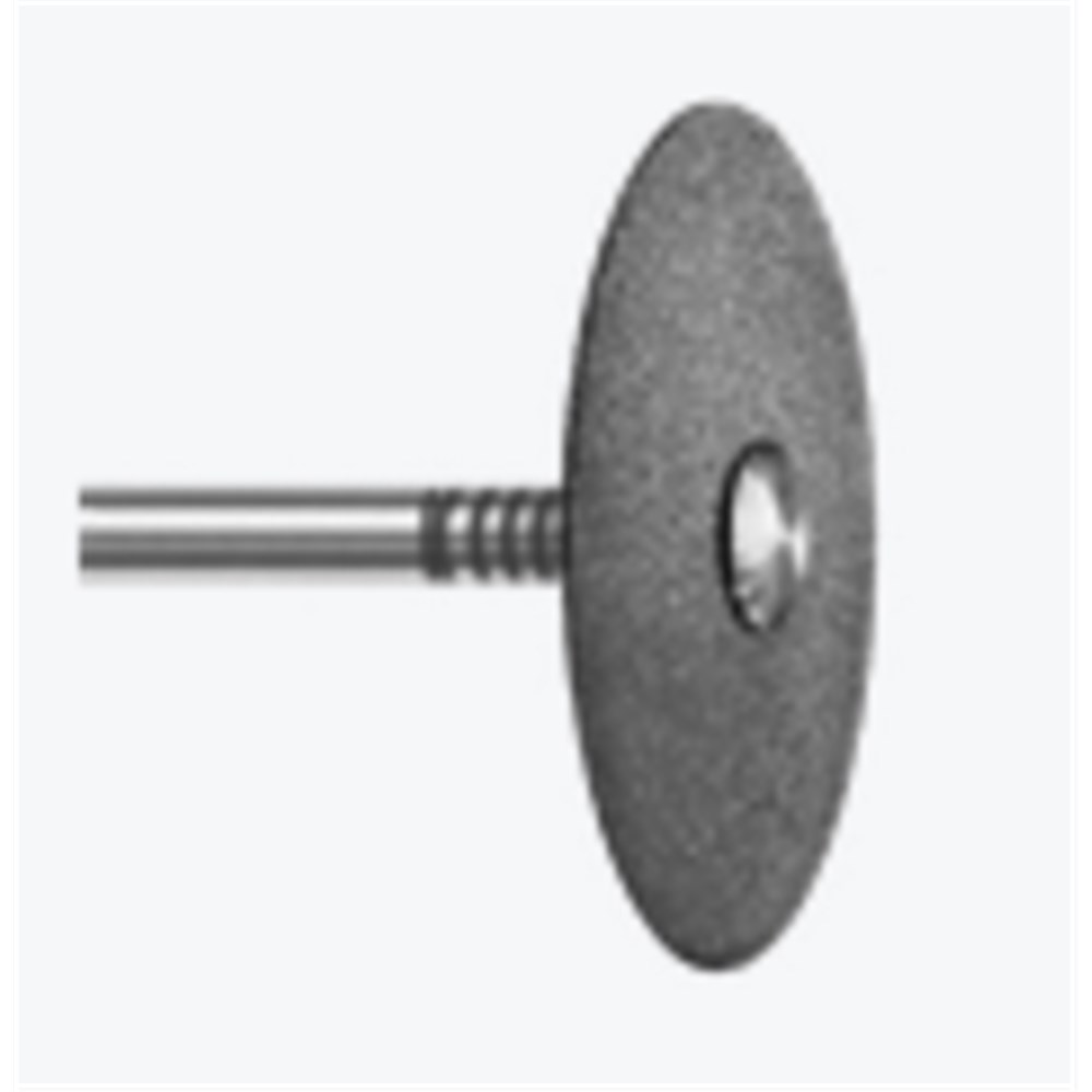 K6974 mounted diamond disc with resin bond for separating and trimming of ceramics and metal alloys. Does not leave black marks on ceramics. HP 104 shank for laboratory straight handpiece, size 220 (22mm diameter)