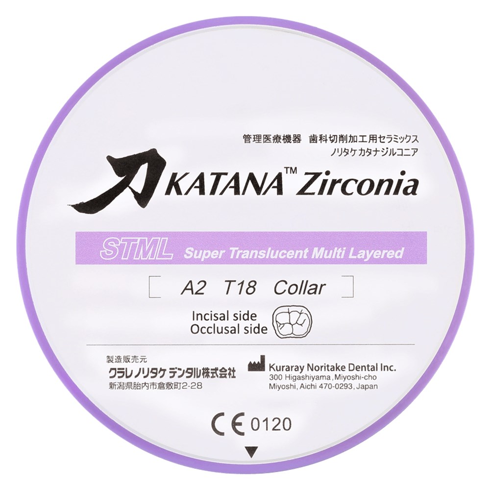 With KATANA Zirconia STML light is transmitted in the incisal area and blocked in the cervical area. You have the flexibility to make beautiful full contour prosthetics, regardless of the abutment color. It’s a pioneer of zirconia with a color/natural translucency and color gradient. Use KATANA Zirconia STML for your next full contour prosthetics.