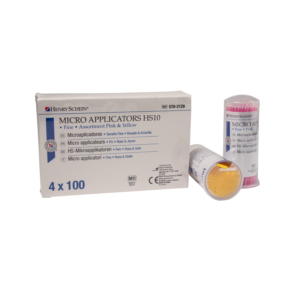 Henry Schein Micro Applicators - HS10 - Fine 1.5mm - Pink Yellow, 4 x 100-Packs