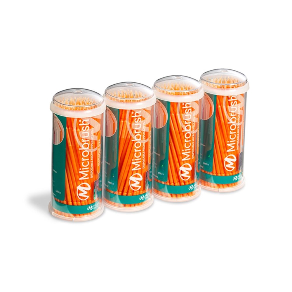 Our award-winning Microbrush applicators feature non-absorbent fiber tips and a bendable neck to give dentists maximum control of their procedures. Packaged in convenient, practical tubes for hygienic dispensing, or tray refills designed to fit in the Microbrush sion™ dispenser, these applicators are offered in a variety of sizes and colors. With a stiff head designed for scrubbing and a strong bending portion for accurate placement of solution in hard to reach areas, Microbrush applicators offer dentists unparalleled convenience, consistency and control. The non-absorbent fiber tips hold solution in suspension until applied to ensure maximum control and precision in every restoration.