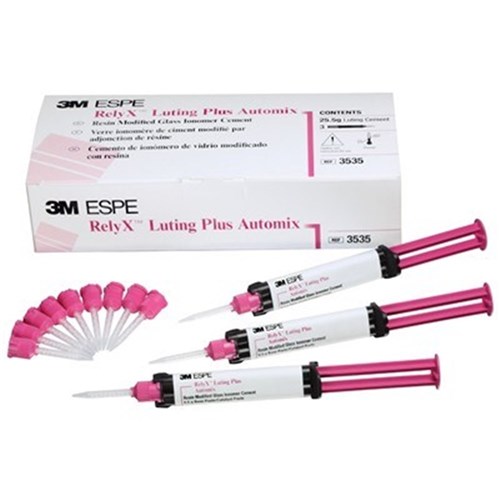 An advanced, resin-modified glass ionomer luting cement. Its strong mechanical properties and easy handling make RelyX Luting Plus cement the perfect choice for cementing in a wide range of indications, including: