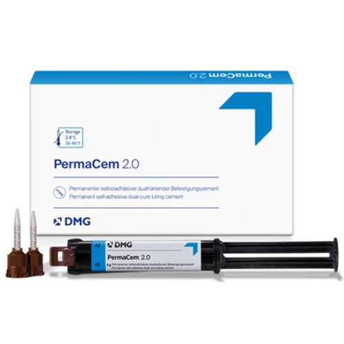 The dual-curing PermaCem 2.0 is the modern generation of self-adhesive luting composites. The new adhesive monomer formulation ensures excellent adhesion to all materials – including zirconia and other highly aesthetic ceramic restorations. The Flow 2.0 formula guarantees extremely easy working and incredibly simple excess removal.