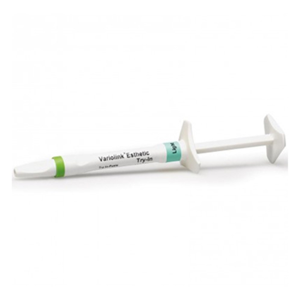 Variolink Esthetic try-in pastes are water-soluble glycerine pastes. The try-in pastes enable the shade effect of all-ceramic restorations (veneers, inlays, onlays, crowns and bridges) to be simulated which are to be cemented with Variolink Esthetic luting composite.