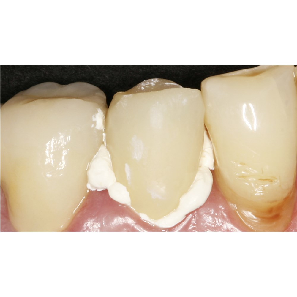 TempoCem NE is your classic temporary cement without eugenol. Its excellent material properties make it the ideal partner for temporary luting of temporary and permanent crowns, bridges, inlays and onlays. Thanks to self-mixing in the Automix or Smartmix Dispenser, you have the option of applying the material directly into the temporary. This makes the workflow a great deal easier and guarantees the best material properties: adhesion, removability and excess removal – always ideal. For each indication. Of course, your patient benefits from this too. Incidentally: TempoCem NE and Luxatemp are THE dream team for temporary restorations. This temporary luting cement is free from eugenol – and can therefore be used for all temporary insertions, whether the final luting is conventional or adhesive. Thanks to its very thin film thickness (under 20 μm!), TempoCem NE provides a precise fit.