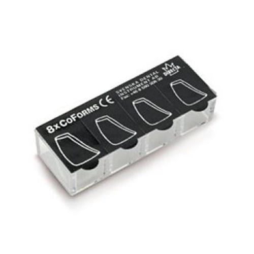 CoForm, matrix system, is a unique set of pre-formed transparent matrices, made of celluloid plastic that are specifically designed to deal with composite Class IV restorations as well as various tooth fractures. The method and advantages of celluloid plastic matrices.The cavity is filled in layers in the usual manner. The only difference is that when the last layer is placed, instead of shaping and curing, the matrix is pressed onto the uncured composite giving the restoration the anatomy of a healthy tooth. The composite is then cured through the clear matrix.