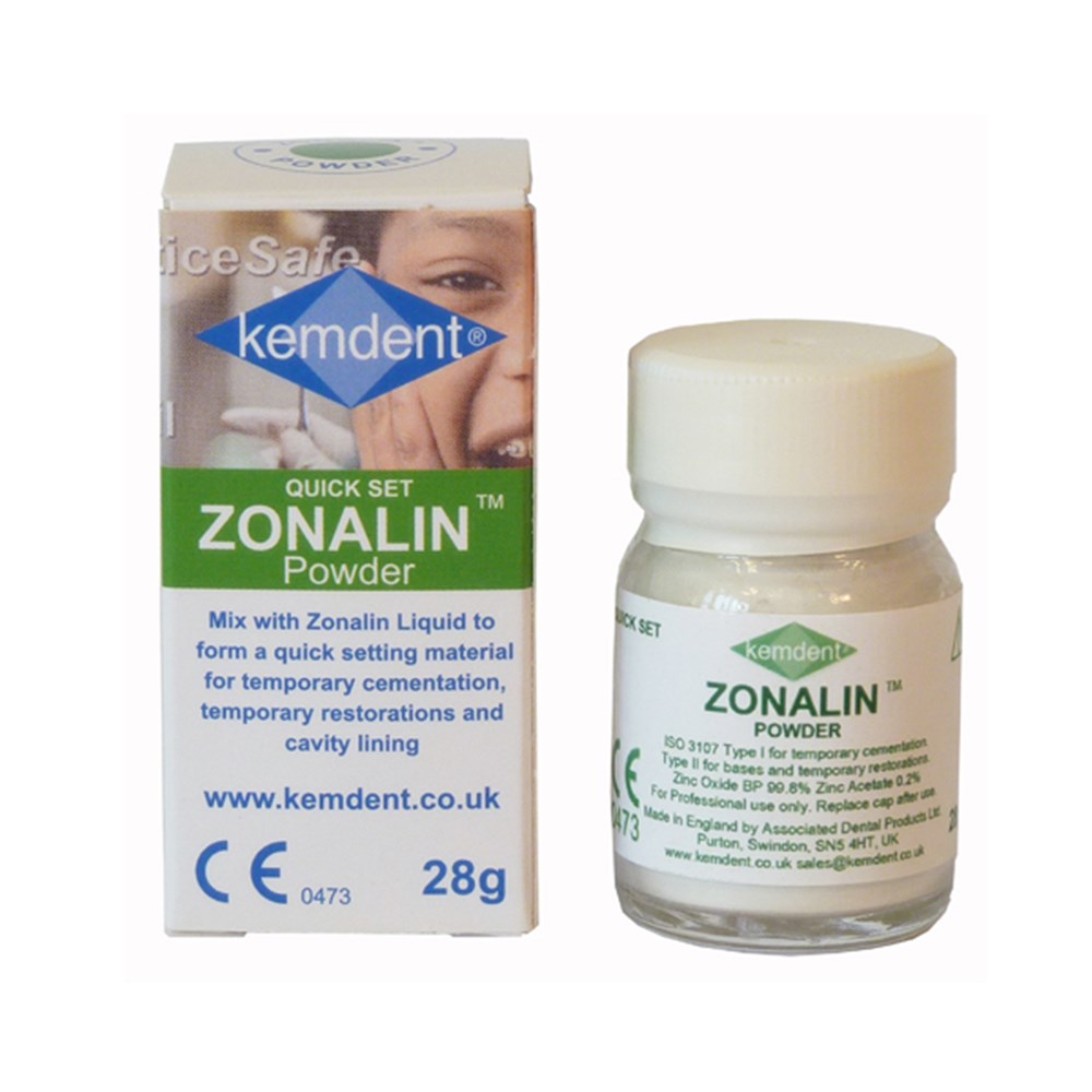 Kemdent ZONALIN - Luting Cement - Quick Set Powder - 28g Jar