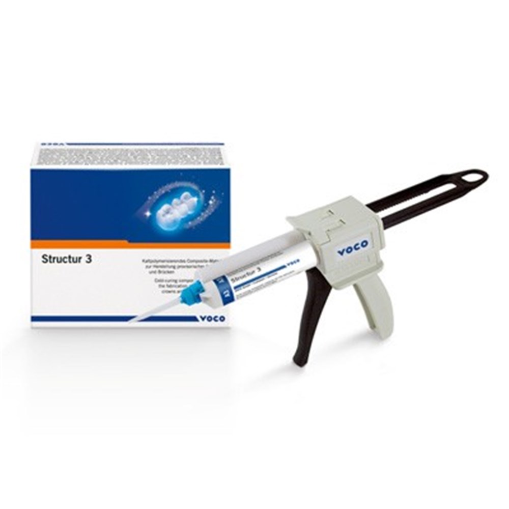 Structur 3 is a new cold-curing composite material for the fabrication of provisional crowns and bridges. It is available in 8 shades.
