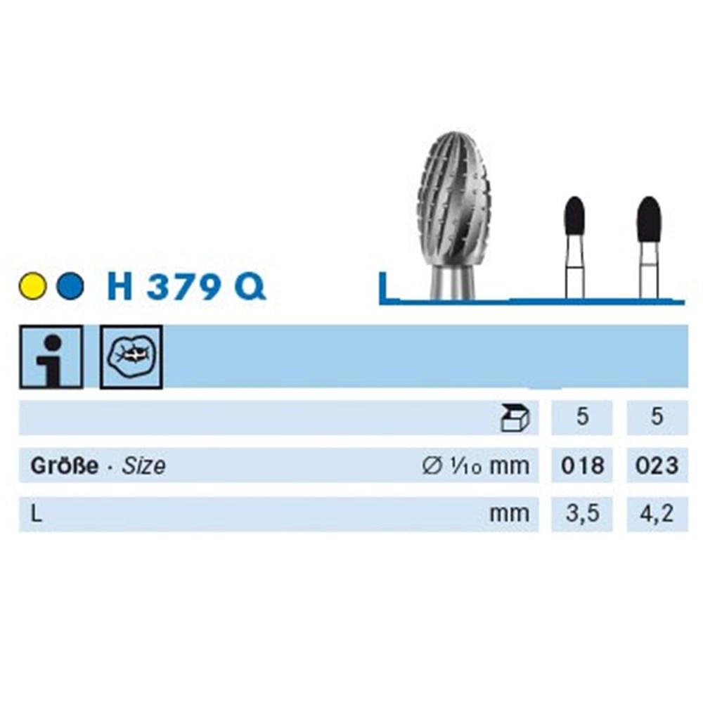 H379 fine tungsten carbide, HP 104 shank for laboratory or surgical handpiece, Size 023 (2.3mm) diameter, with 4.2mm working length. US Number 7408