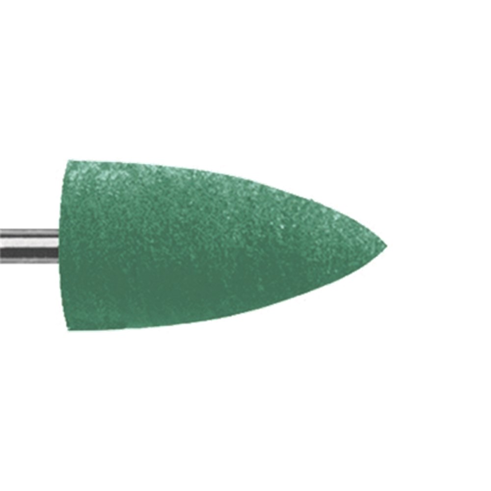 Coarse pre-polishing cone for working on denture acrylics. Extraoral use, mounted HP 104, with 10mm diameter and 19mm working length.