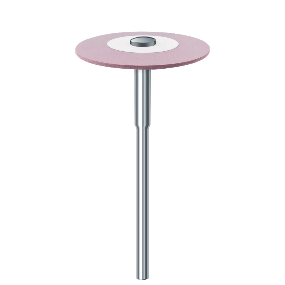 Polishers for ceramics interspersed with diamond medium grit for high shine polishing. Mounted HP 104, 26mm diameter wheel with 2.0mm working length.