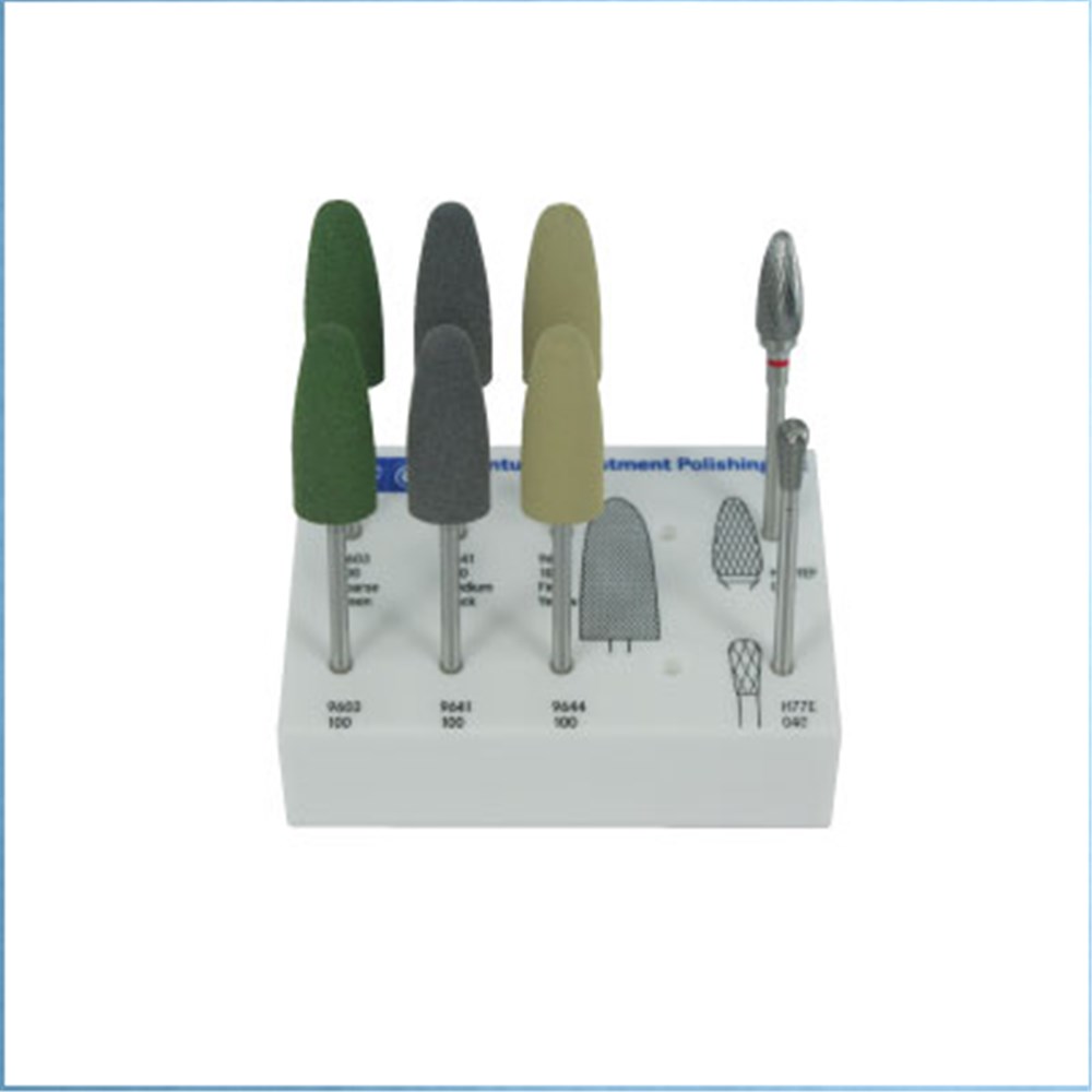 Six Polishers - two each of the 9603 Coarse (Green), 9641 Medium (Brown) & 9644 Fine (Yellow) Polishers respectively for pre-polishing, polishing & high-shine polishing of denture acrylics, extraoral use. Optimal recommended speed = 6,000 RPM
