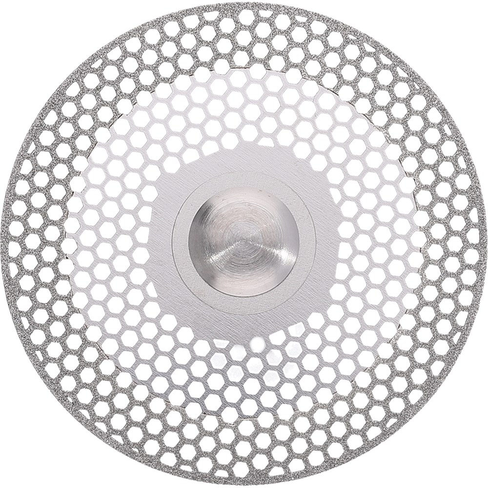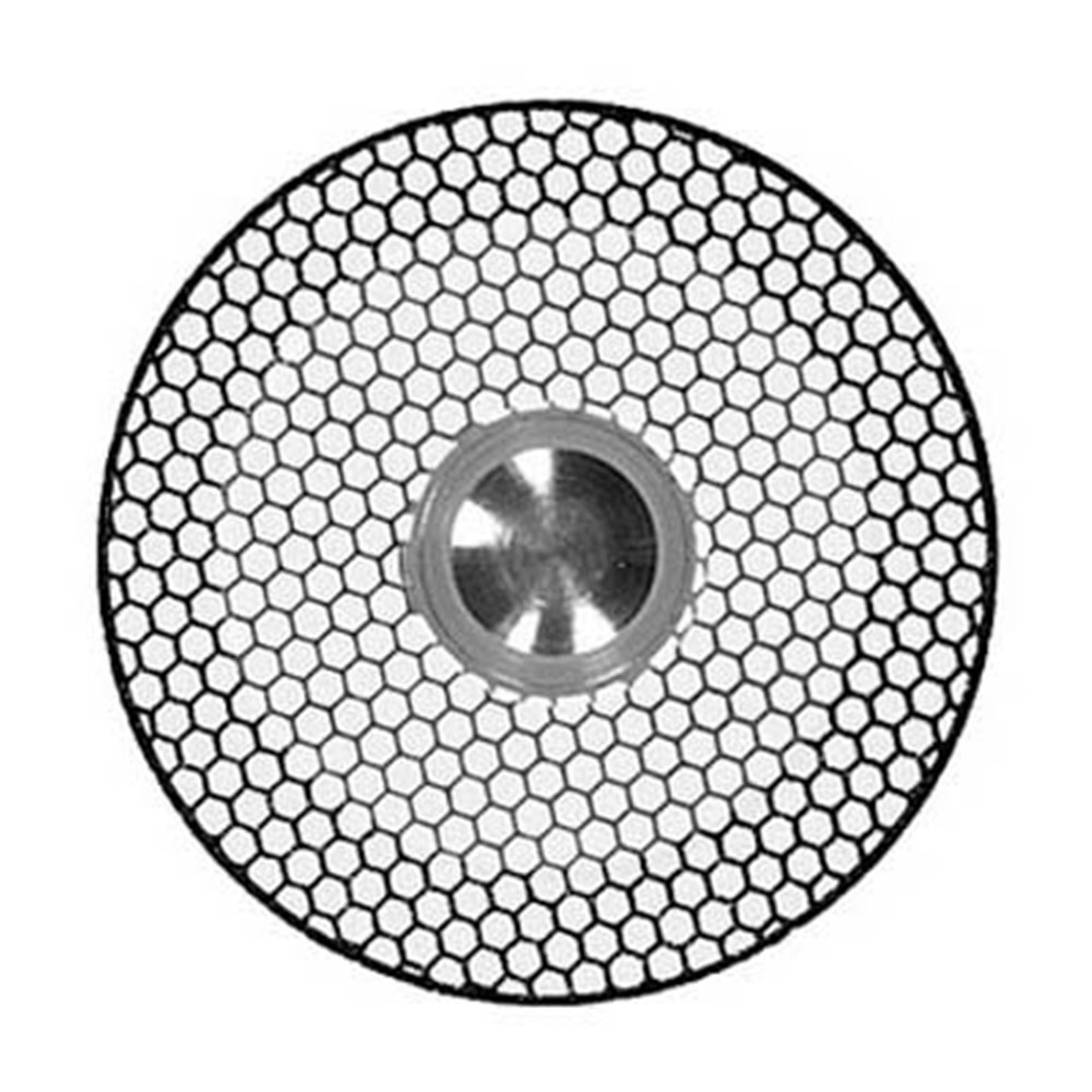 Honeycomb design medium grit diamond disc for ullta fine contouring of ceramics / acrylics. Mounted HP 104, 22mm diameter with 3 mm coating
