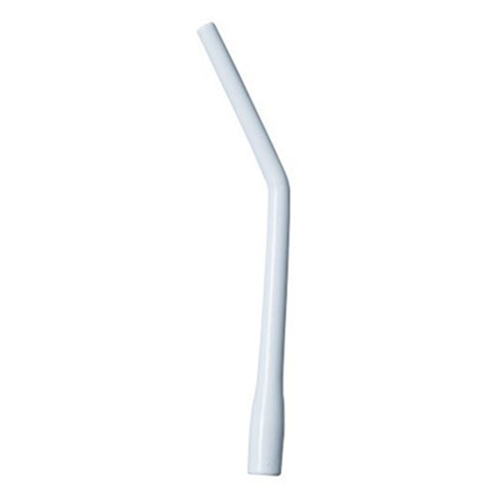 Surgical tip with bend to fit 11mm hose terminal with smaller diameter for more precise evacuation of fluids from the oral cavity. Autoclavable to 135°C.