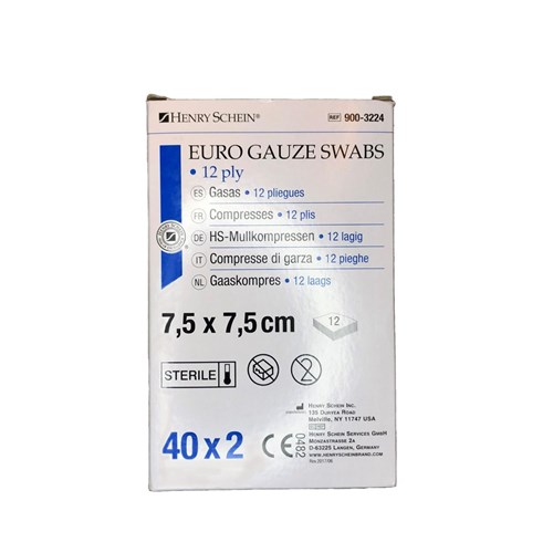 • Henry Schein EuroGauze Swab - Sterile - 12 ply Woven - 7.5cm x 7.5cm, 40-Pack x 2