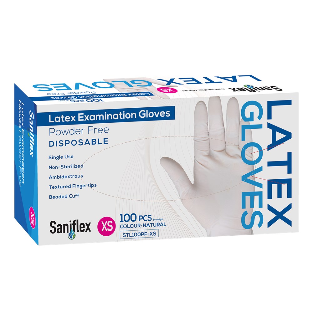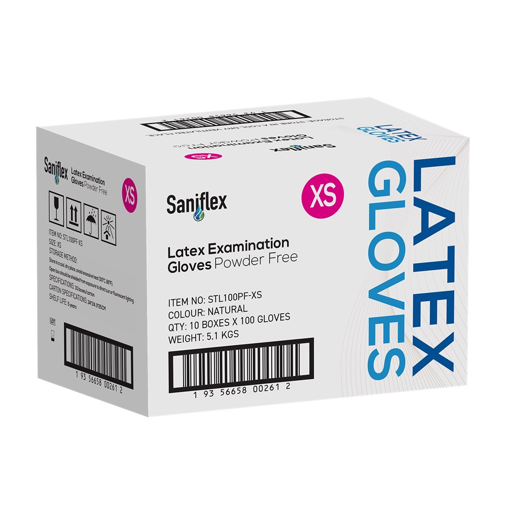 Saniflex Latex Exam Gloves - Powder Free - Extra Large, 100-Pack - Carton of 10 Boxes