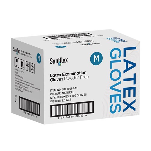 Saniflex Latex Exam Gloves - Powder Free - Large, 100-Pack - Carton of 10 Boxes