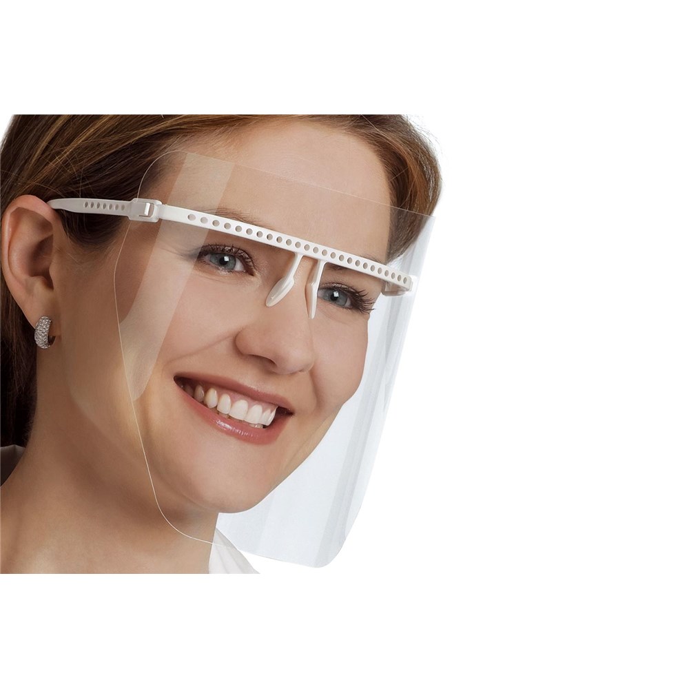Vista-Tec provides excellent facial protection and a clear optical view. It is comfortable to wear and elegantly designed; in addition, it does not hinder communication with the patient. The protective shields, which are made of the highest quality transparent plastic, are scratch resistant and antifog. They can be used several times as they can be cleaned easily with mild soap, water as well as disinfectants according to the Vista-Tec Cleaning, disinfection & sterilization instructions. All frames have built in clips for Vista-Tec face-shields. Shields are also available separately as refills.