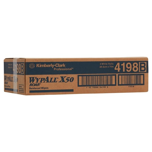 • Kimberly-Clark WYPALL X50 - Roar Wipers - Small Roll - White - 24.5cm x 70m, 4-Pack