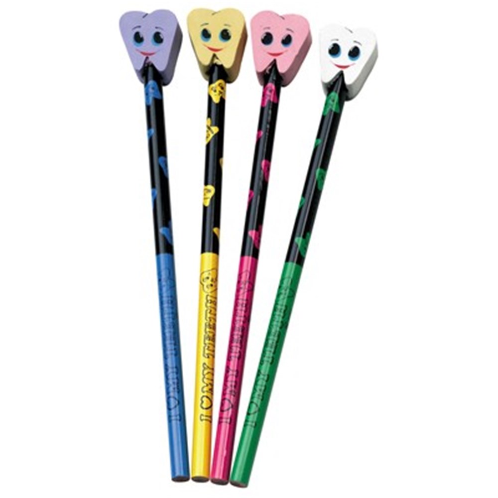 Sherman Tooth Shaped Pencil and Eraser - Assorted Colours, 36-Pack