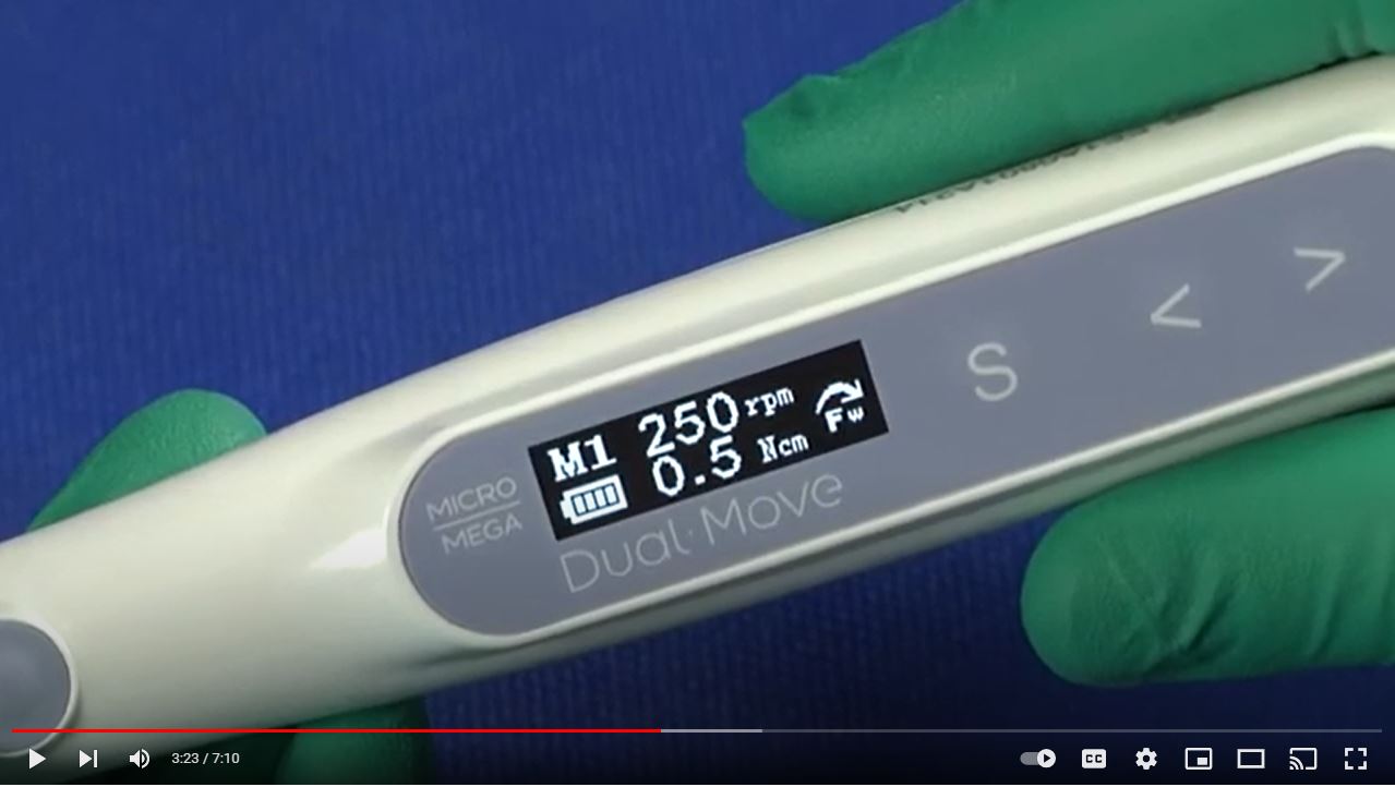 Using a cordless, well-balanced in hand and silent endodontic motor with control of movement, speed and torque, offers freedom and comfort, as well as an optimal security when shaping the root canals. The display turns around in order to suit to left-handers. The contra-angle rotates without being disconnected from the handpiece. Its miniature head and thin neck make it easier to reach the posterior teeth while keeping an excellent visibility on the root canals inlets and working area. Functionalities, high level of customisation, as well as advanced features that are available when combined with the Dual Pex apex locator, make Dual Move the ideal portable device for individual practices, in continuous rotation or reciprocating movement
