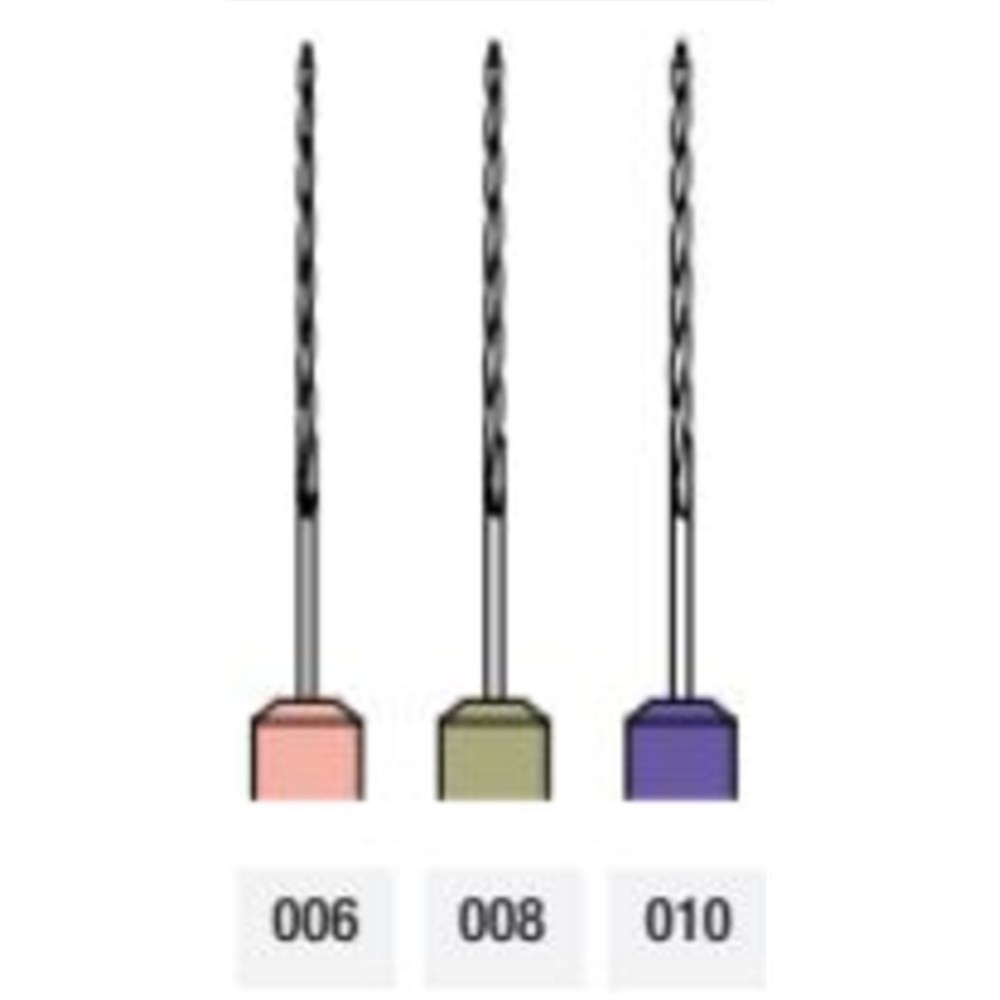 Manual file for probing and checking patency of the root canal. Stainless, heat-strengthened steel. KOMET #17521 21mm Assorted Sizes (006-010) Sterile Pk of 6 Short Plastic Handle
