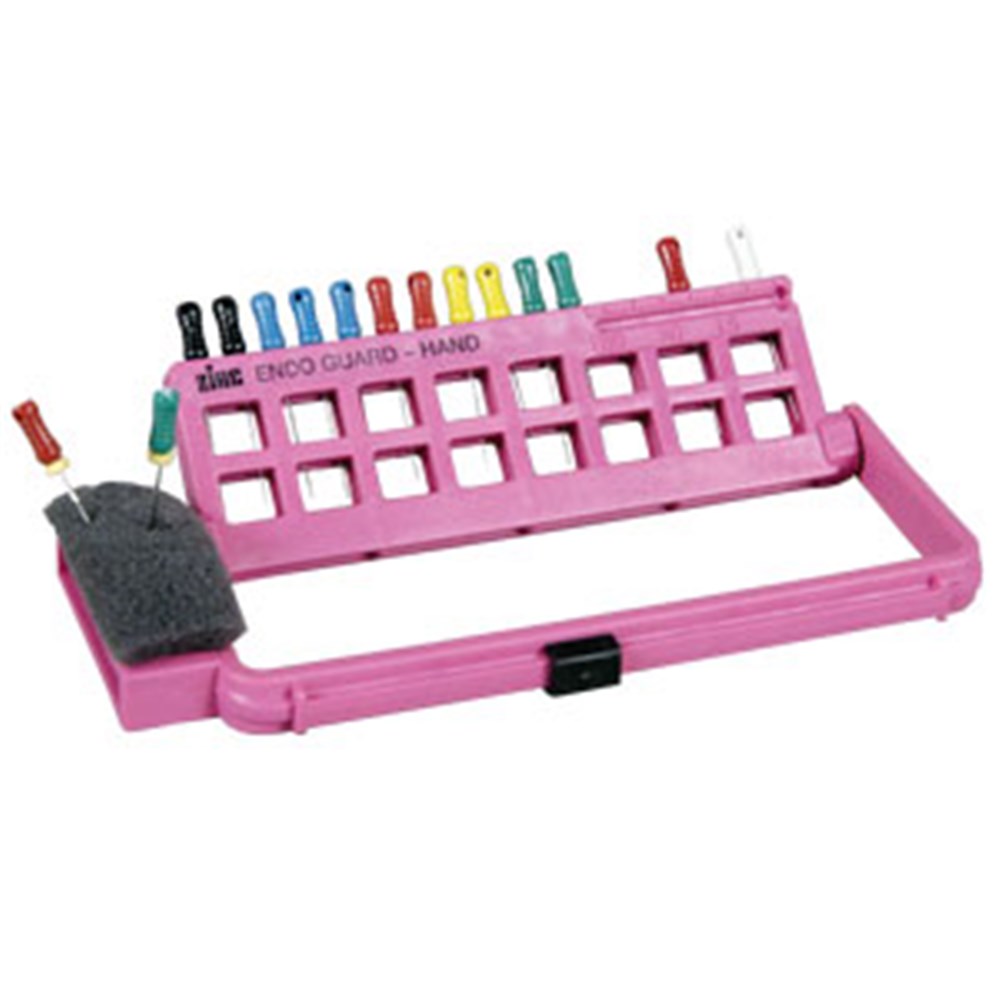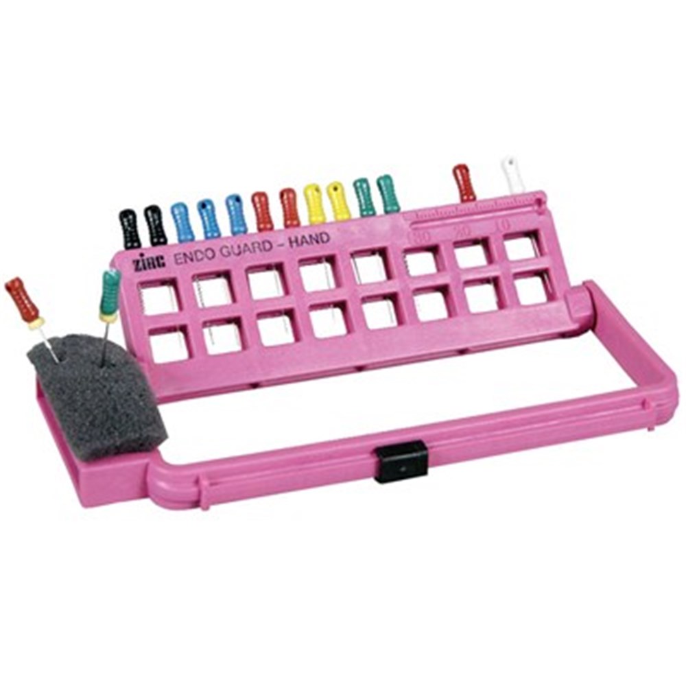 A unique delivery system to organize, store and sterilize endodontic files and reamers. The Endo Guard swivels 360o with stops at every 45o for operator''s choice. Large slotting provides complete visibility and draining during cleaning