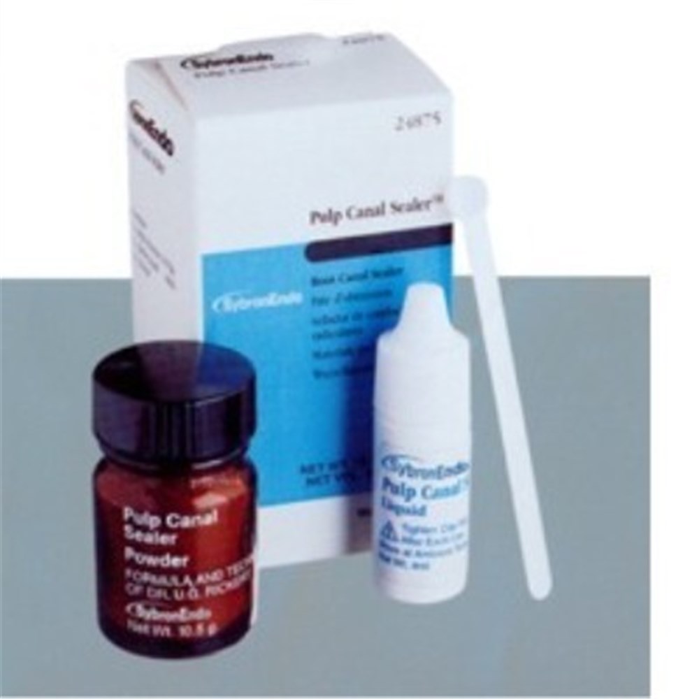 Pulp Canal Sealer is a zinc oxide eugenol sealer that has a powder base and liquid catalyst. It is a non-toxic and non-irritating formulation that is very radiopaque and has long history of clinical success.
