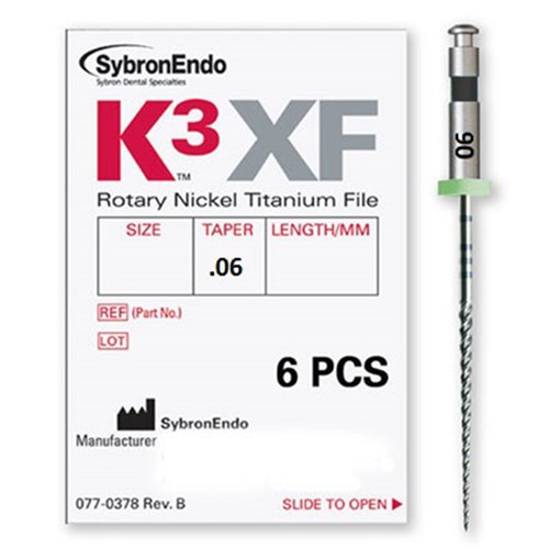 K3XF provides clinicians with the safety and self-centering features of the original K3 plus an extraordinary new level of flexibility and resistance to cyclic fatigue provided by Sybron Endo proprietary R-Phase Technology. K3XF is the ultimate in safety, flexibility and control for rotary file users looking for a stonger and more flexible file.