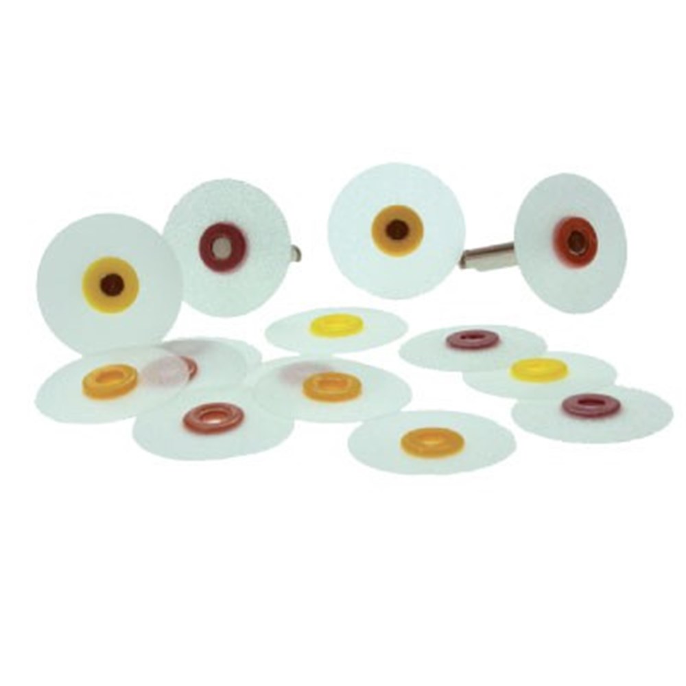 OptiDisc finishing and polishing system gives your restorations a final polish equal to that of natural dentition. The OptiDisc system is the perfect combination of different grit size discs for contouring, finishing and high gloss polishing for composite, glass ionomers, amalgams, semiprecious and precious metals. Features and Benefits: