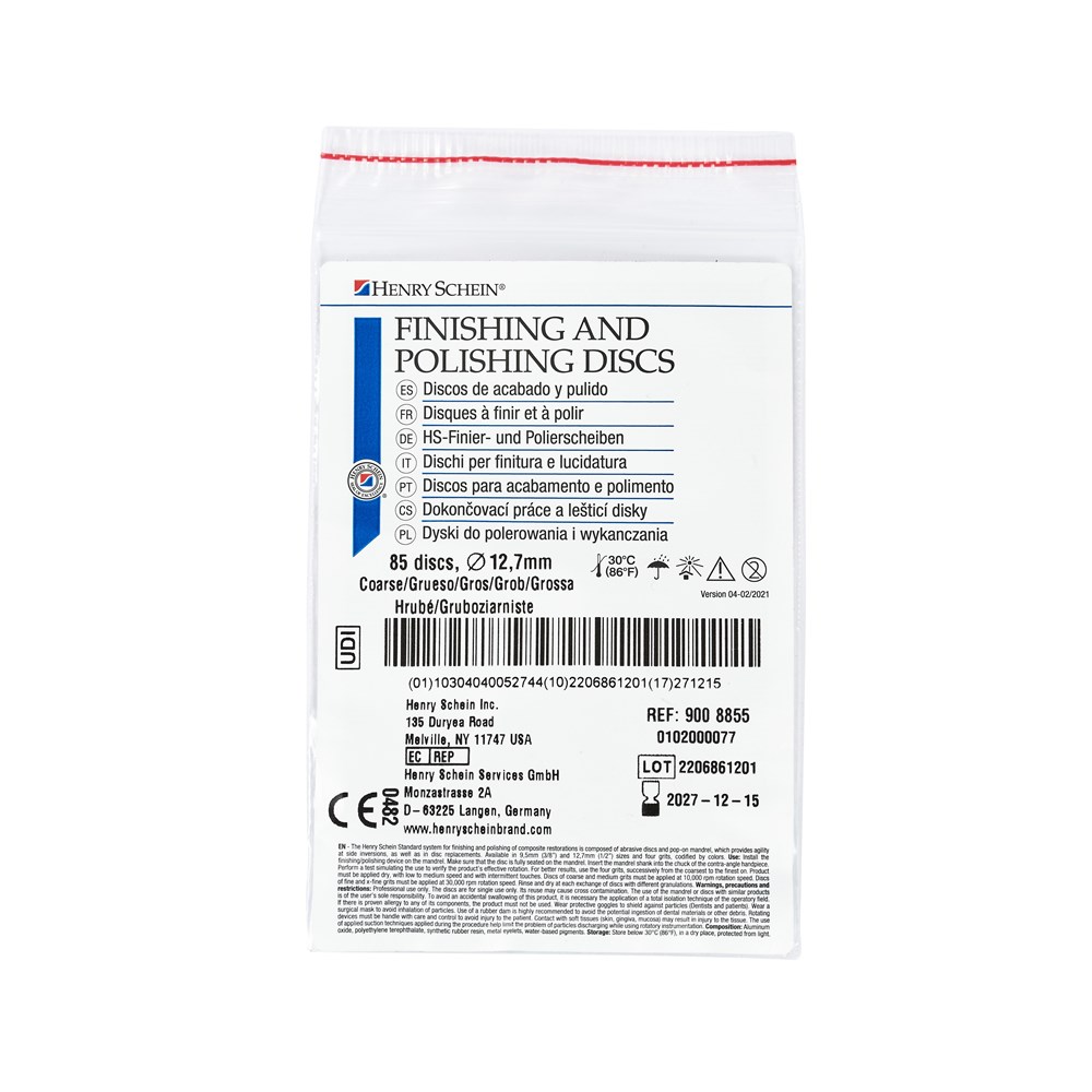 Flexible finishing and polishing discs for composite restorations. Aluminium oxide coated, these discs are available in four grits, and are colour coded for easy identification. Used in sequence they provide effective contouring and a natural lustre to the restoration. Available in 9.5mm and 12.7 mm diameter. Refill Pack of 85.
