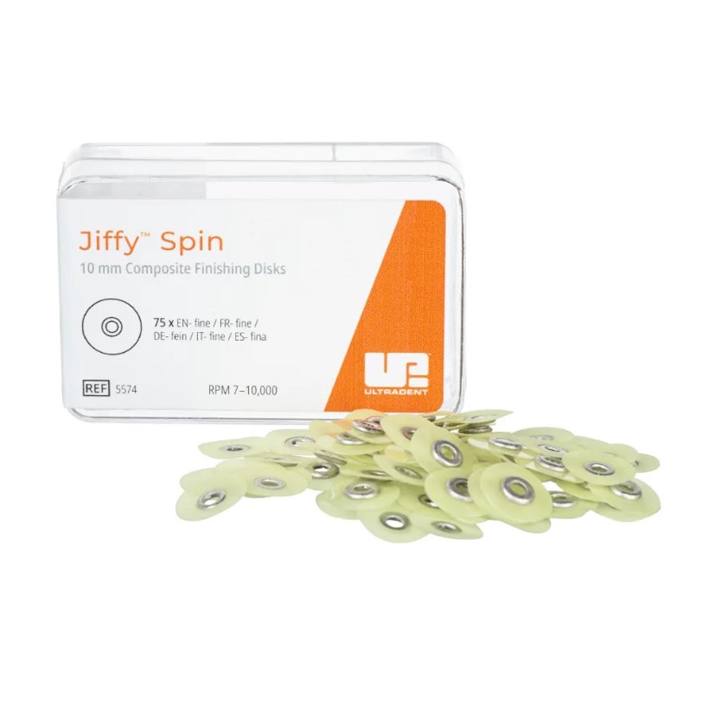 Ultradent Jiffy Spin Disk - Shaping and Finishing Discs - 10mm - Yellow - Fine, 75-Pack