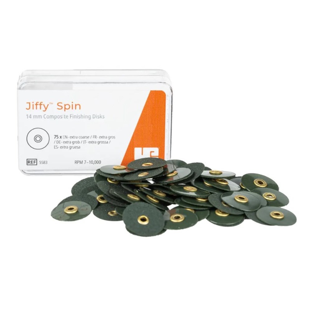 Ultradent Jiffy Spin Disk - Shaping and Finishing Discs - 14mm - Green - Extra Coarse, 75-Pack