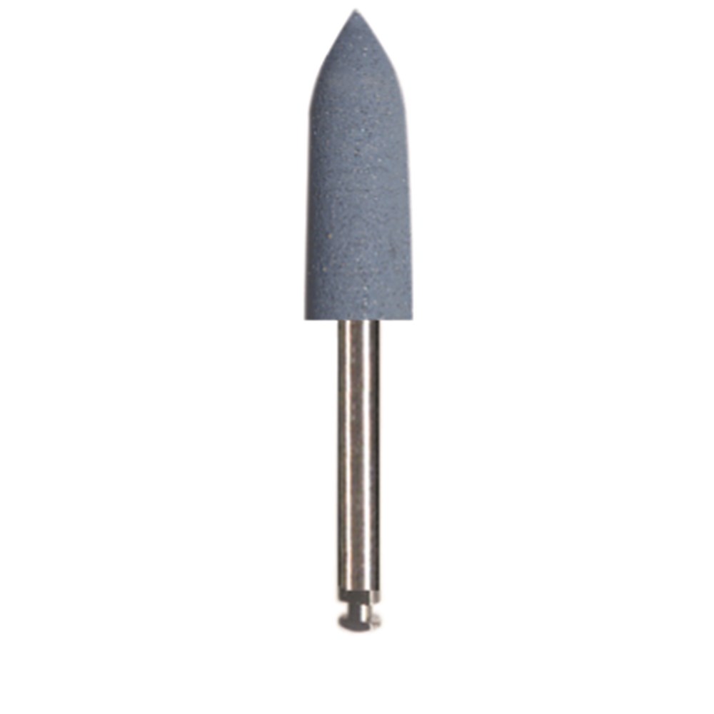 The dental industry?s ?original? and ?longest lasting? mounted rubberized abrasives, MIDGETS in HP, RA and FG shanks, are packed 12 points of one shape per box. The following color-coded variety is available for your convenience. Brown (aluminum oxide) - ?Long-lasting? for pre-finishing all metals. Black (silicon carbide) - ?X-Coarse? for carving amalgam and gold. Green (silicon carbide) - The ?traditional industry favourite? for fast polishing of amalgam and gold. Leaves a satin finish. Blue (silicon carbide) - For final ?hi-shine? polishing of amalgam, precious, semiprecious and non-precious metals. Imps (Red) (aluminum oxide) - ?Coarse? - the ?improved Method of Prophylaxis? due to the elimination of the need for pumice. Rapidly removes tartar and stubborn tobacco stains without danger to enamel. Ideal for patients with highly sensitive teeth. White (aluminum oxide) - ?Ultra-fine? for ?Highest? polish on composites, enamel and gold. Grey (silicon carbide) - For instant ?hi-glaze? touch-up polishing of porcelain. HP (3/32" shank)