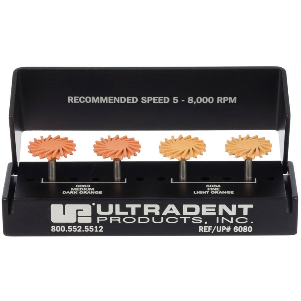 Ultradent Jiffy Polisher - Intraoral - Natural Universal Wheel - Fine and Medium - 14mm, 4-Pack with Aluminium Block