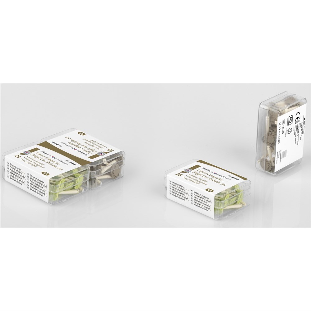 - Diamond impregnated, flexible spirals allow easy access to all tooth surfaces, including hard to reach interproximal areas.