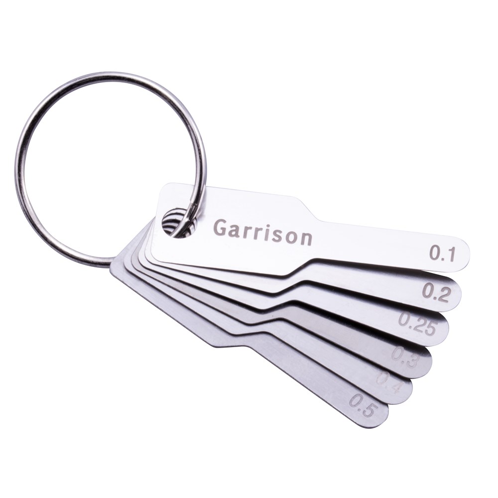 Accessory to Fitstrip. Gauge includes 6 thicknesses (0.10 mm, 0.20 mm, 0.25mm, 0.30 mm, 0.40 mm, 0.50 mm)​.