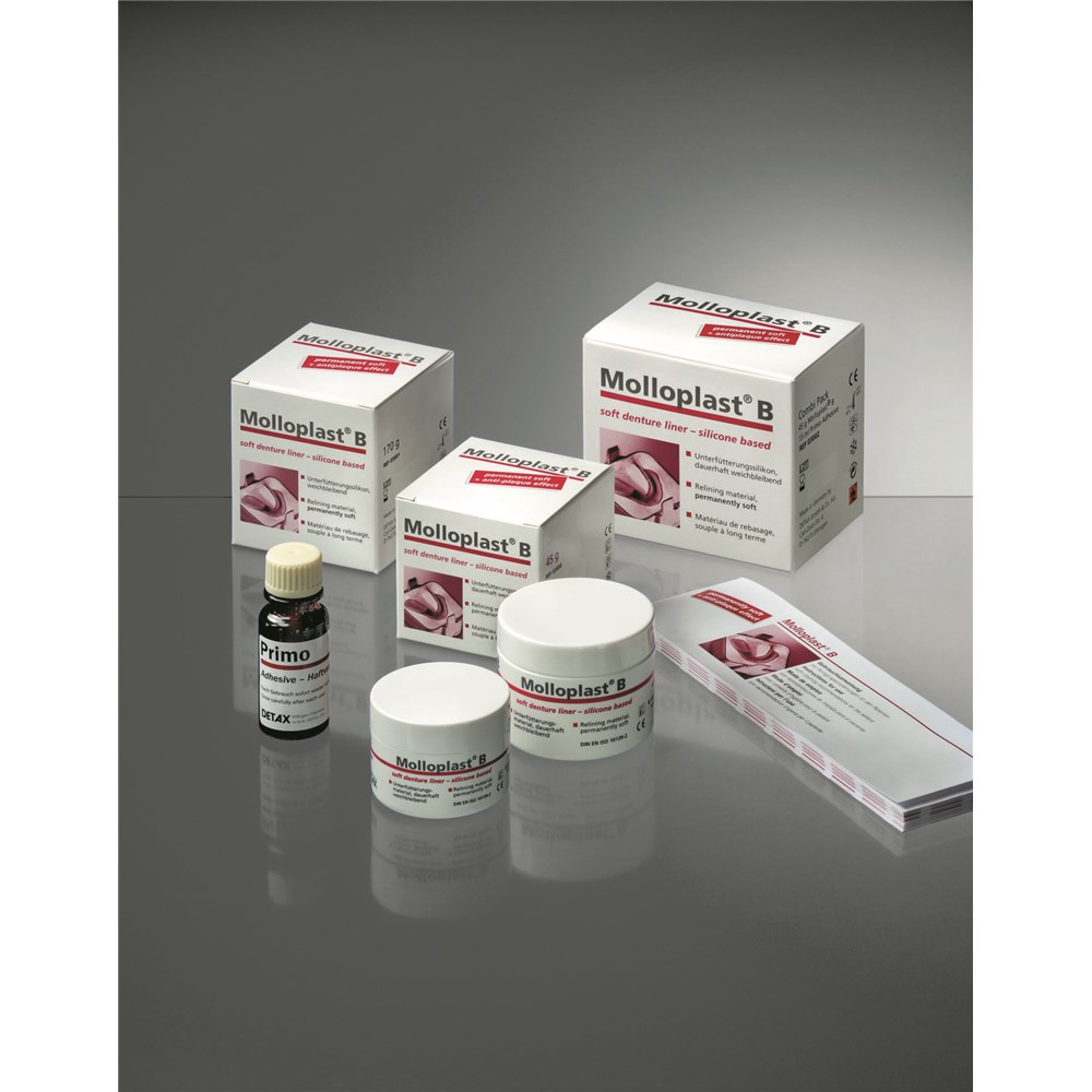 Permanent highly elastic relining material, silicone based, heat curing.